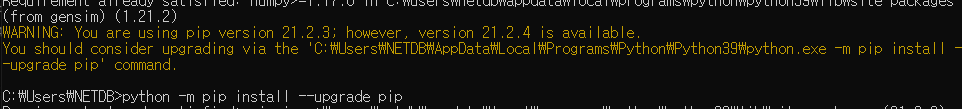 02. 만능 치트키 cmd - pip install gensim
