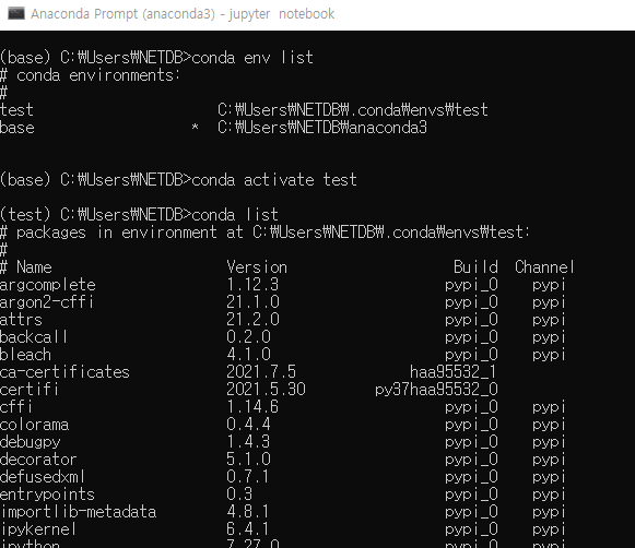 - (cmd) conda activate test : test 가상환경을 만들어줘서 실행 쌉가능
