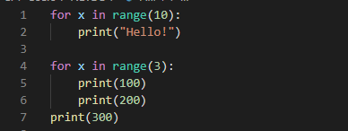 - for 문 안에서 100과 200이 번갈아가면서 range(3) 이 출력되고, for 문에 있지 않은 300은 한번 출력된다