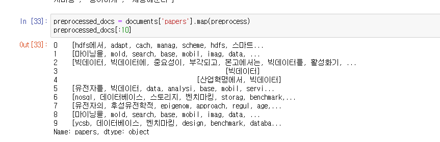 LDA 모델을 학습시키려고 하는데 딕셔너리 형태로 만들어주라고 한다